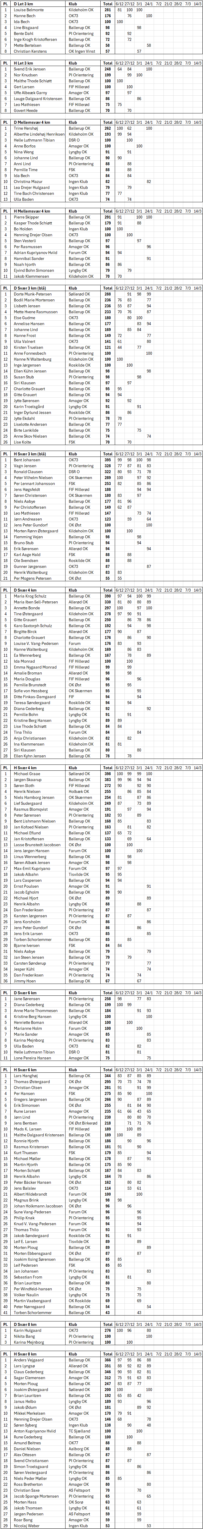 Samlet stilling efter 4 løb.